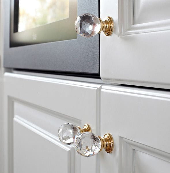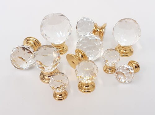 Gałka Kryształowa . Gałka z fasetowanego kryształu z szlifem diamentowym i podstawą w litego mosiądzu. Elegancka gałka z klejnotami, która jest w tym samym czasie klasyczna i współczesna, z ponadczasowym, wyrafinowanym urokiem. Szeroka gama proponowanych średnic daje wiele możliwości, może być używana jako dopracowany detal w meblach łazienkowych i w największym stopniu takich jak odrobina klasy w kuchni, salonie i innych meblach. Kolejny mebel, który możesz upiększyć.