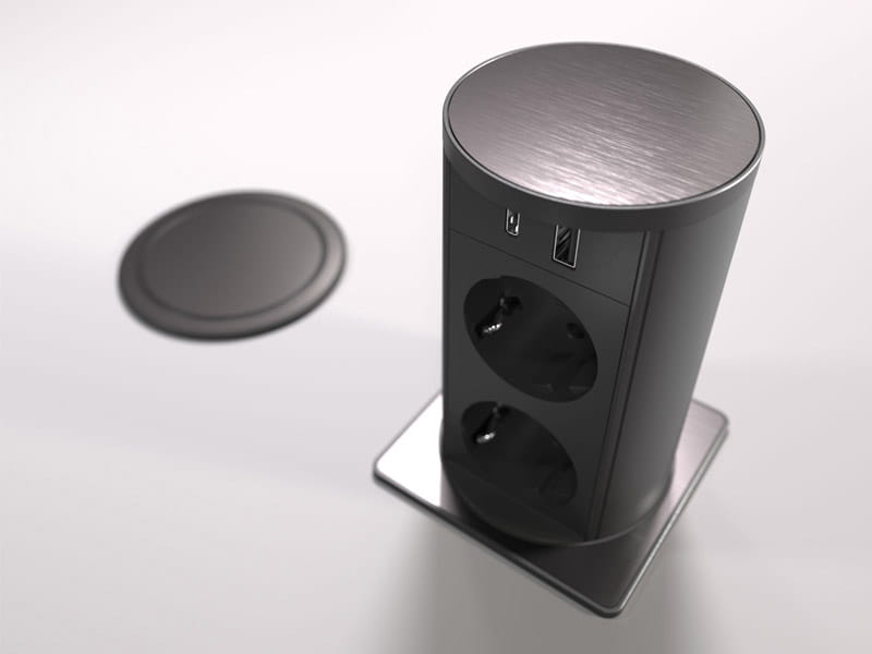 ASA VERSALIFT ROUND czarne gniazdo wysuwne 2x230V + USB A/C + indukcja