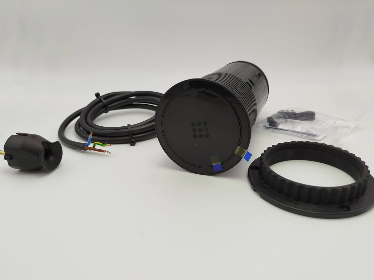 VERSALIFT ROUND czarne gniazdo wysuwne 2x230V + USB A/C + indukcja
