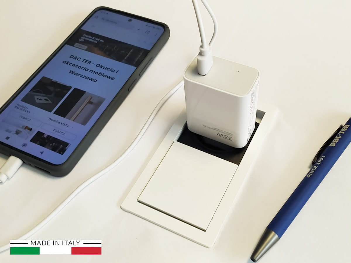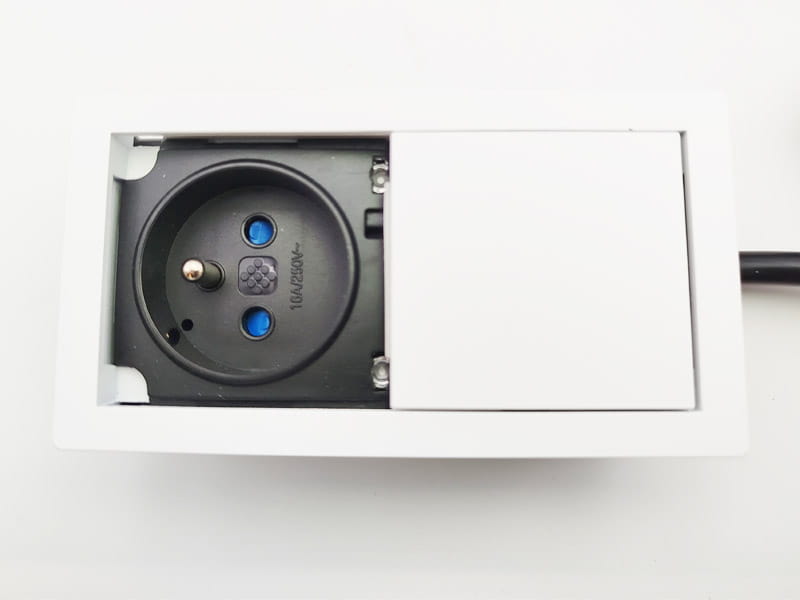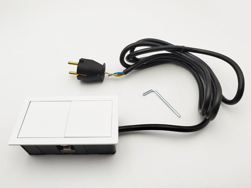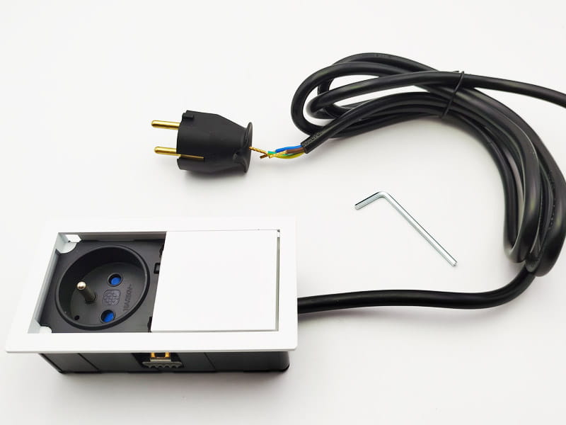 Konstrukcja modułu zapewnia ochronę na poziomie IP54, gwarantując szczelność ochrony w środowiskach narażonych na bryzgi czy wilgoć — pod warunkiem użycia zamkniętej pokrywy. Typowe wymiary gniazda (dla wersji standardowej) to około 123 x 66 x 42,5 mm, co pozwala na wygodny montaż wpuszczany w litym blacie meblowym lub w specjalnych panelach meblowych.