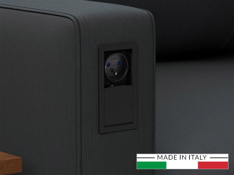 Gniazdo VersaHIT Mono to wysokiej klasy, pojedynczy moduł zasilający, zaprojektowany z myślą o montażu w meblach — szczególnie w kuchennych blatach, stołach konferencyjnych lub eleganckich zabudowach biurkowych. Jego estetyka łączy włoski design z praktycznością zastosowania, a dopracowane detale wykonania świadczą o staranności i jakości marki ASA Plastici.