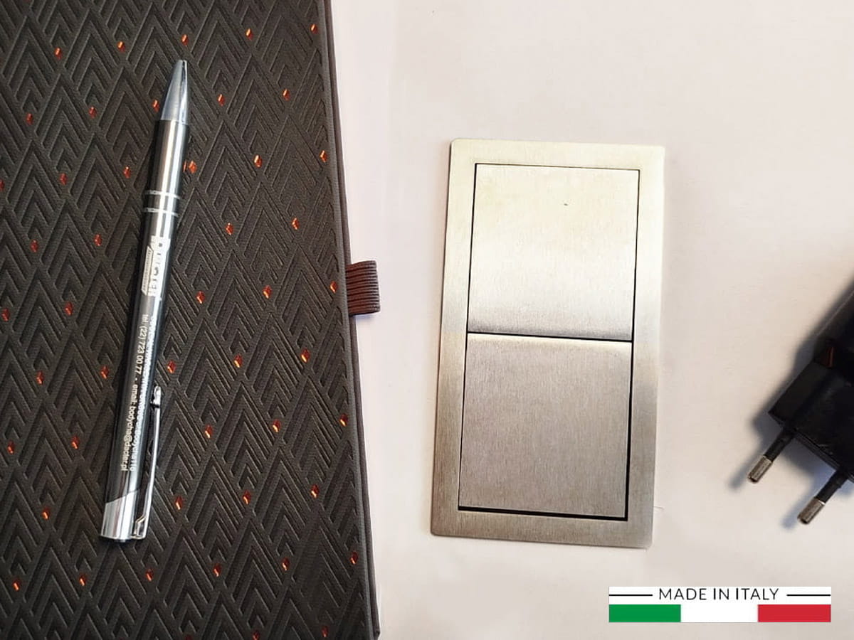 Gniazdo VersaHIT Mono to wysokiej klasy, pojedynczy moduł zasilający, zaprojektowany z myślą o montażu w meblach — szczególnie w kuchennych blatach, stołach konferencyjnych lub eleganckich zabudowach biurkowych. Jego estetyka łączy włoski design z praktycznością zastosowania, a dopracowane detale wykonania świadczą o staranności i jakości marki ASA Plastici.