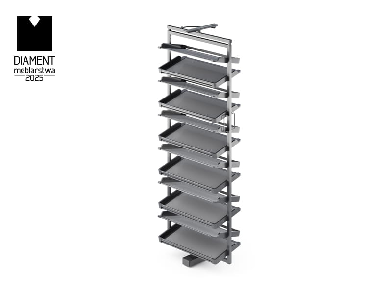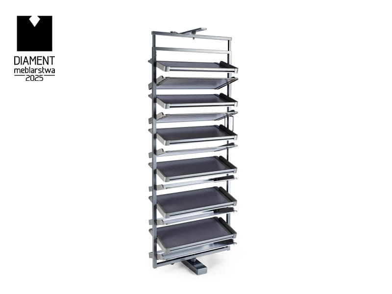 Funkcja pełnego wysuwu zapewnia wygodny dostęp do wszystkich półek kosza na buty. Dzięki tej opcji można w łatwy sposób wyjąć cały kosz, co znacznie ułatwia organizację i porządkowanie obuwia. Pełny wysuw pozwala na szybkie przeglądanie wszystkich par butów oraz ich łatwy wybór. To rozwiązanie jest szczególnie przydatne w głębokich szafach, gdzie dostęp do tylnych półek bywa trudniejszy. Mechanizm wysuwu działa płynnie i cicho, co dodatkowo podnosi komfort codziennego użytkowania kosza.