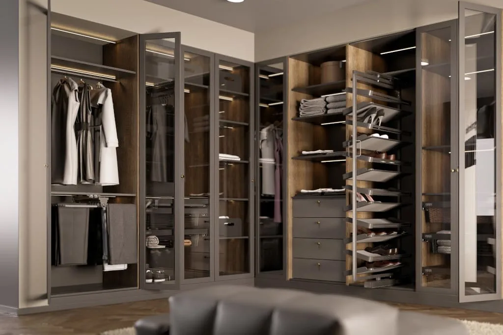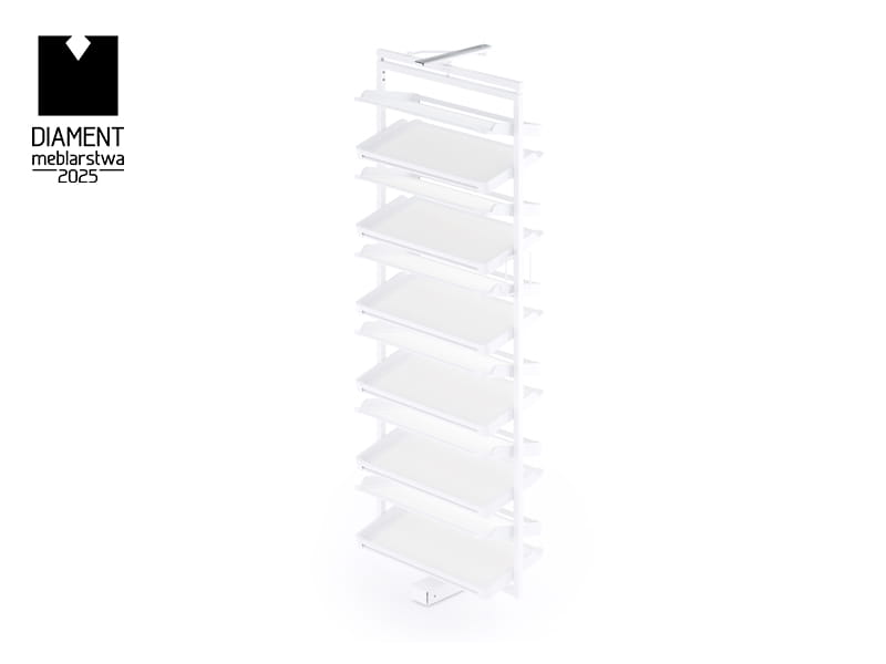 Funkcja pełnego wysuwu zapewnia wygodny dostęp do wszystkich półek kosza na buty. Dzięki tej opcji można w łatwy sposób wyjąć cały kosz, co znacznie ułatwia organizację i porządkowanie obuwia. Pełny wysuw pozwala na szybkie przeglądanie wszystkich par butów oraz ich łatwy wybór. To rozwiązanie jest szczególnie przydatne w głębokich szafach, gdzie dostęp do tylnych półek bywa trudniejszy. Mechanizm wysuwu działa płynnie i cicho, co dodatkowo podnosi komfort codziennego użytkowania kosza.