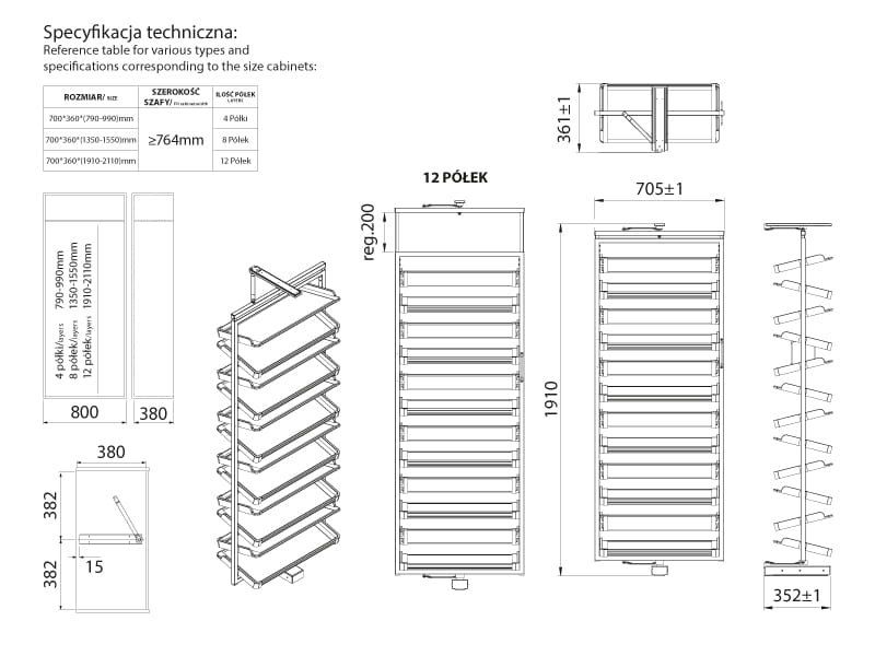 - Liczba półek: 12