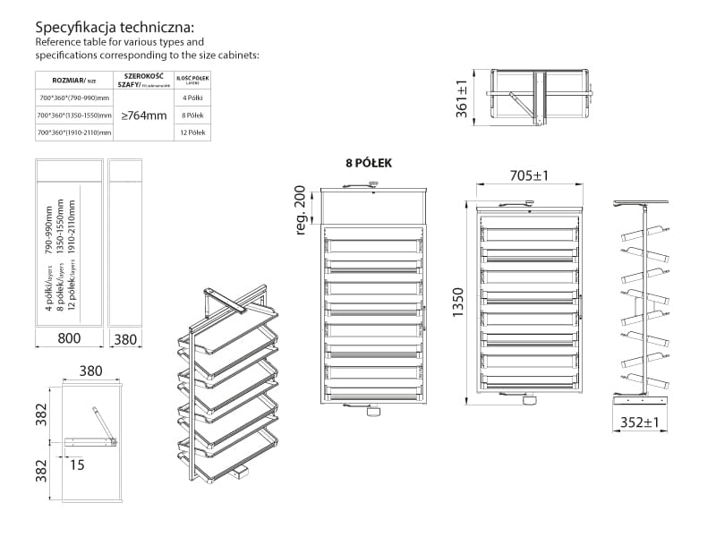 - Liczba półek: 8