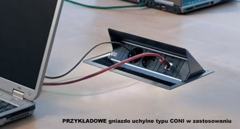 Gdy nie jest używany, moduł CONI zlicowany jest z blatem stołu, czy biurka. Gdy tylko potrzebny jest dostęp do zasilania sieci, czy innych mediów po prostu wystarczy otworzyć pokrywę, by uzyskać dostęp do wymaganych gniazd. Zintegrowana osłona szczotkowa zabezpiecza przewody przez poplątaniem.