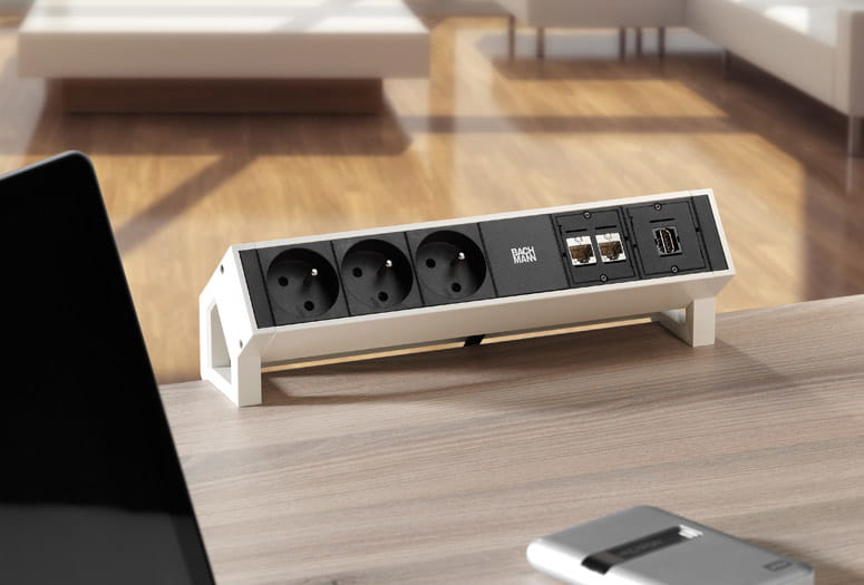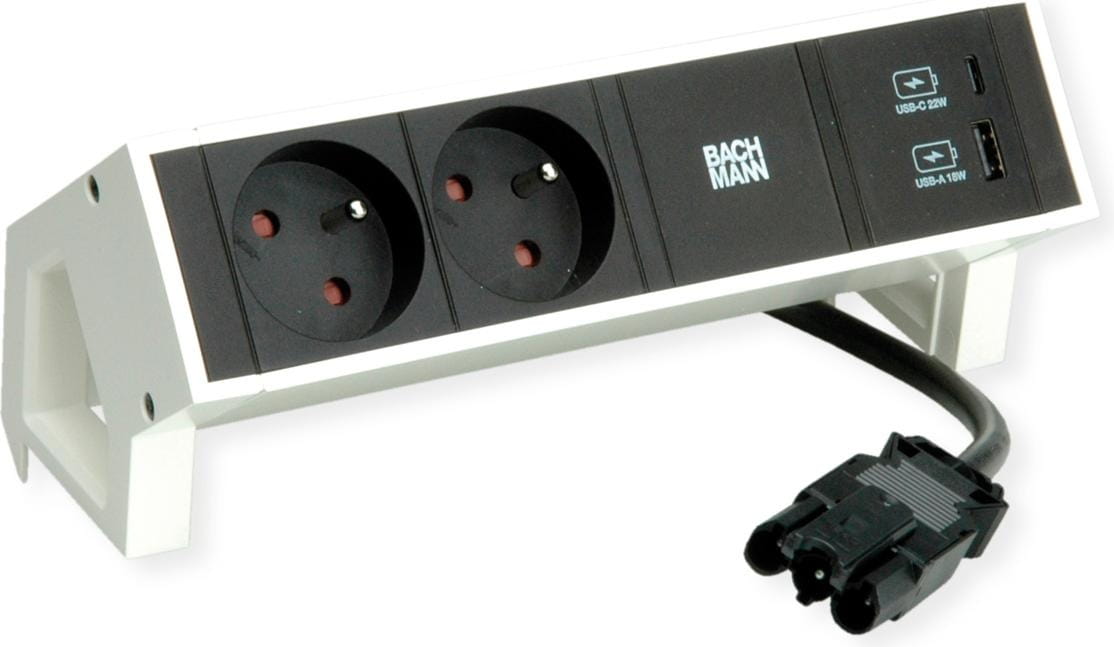 BACHMANN DESK 2 listwa zasilająca 2x230V + USB A/C BIAŁY