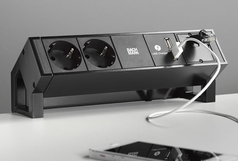 BACHMANN DESK 2 listwa zasilająca 2x230V + USB A/C CZARNY