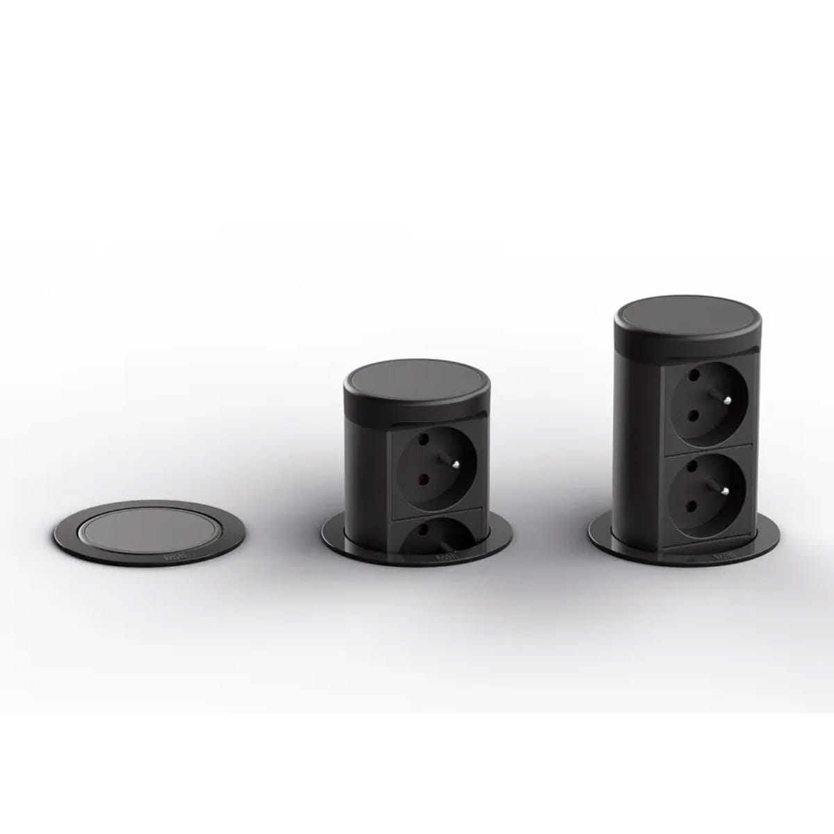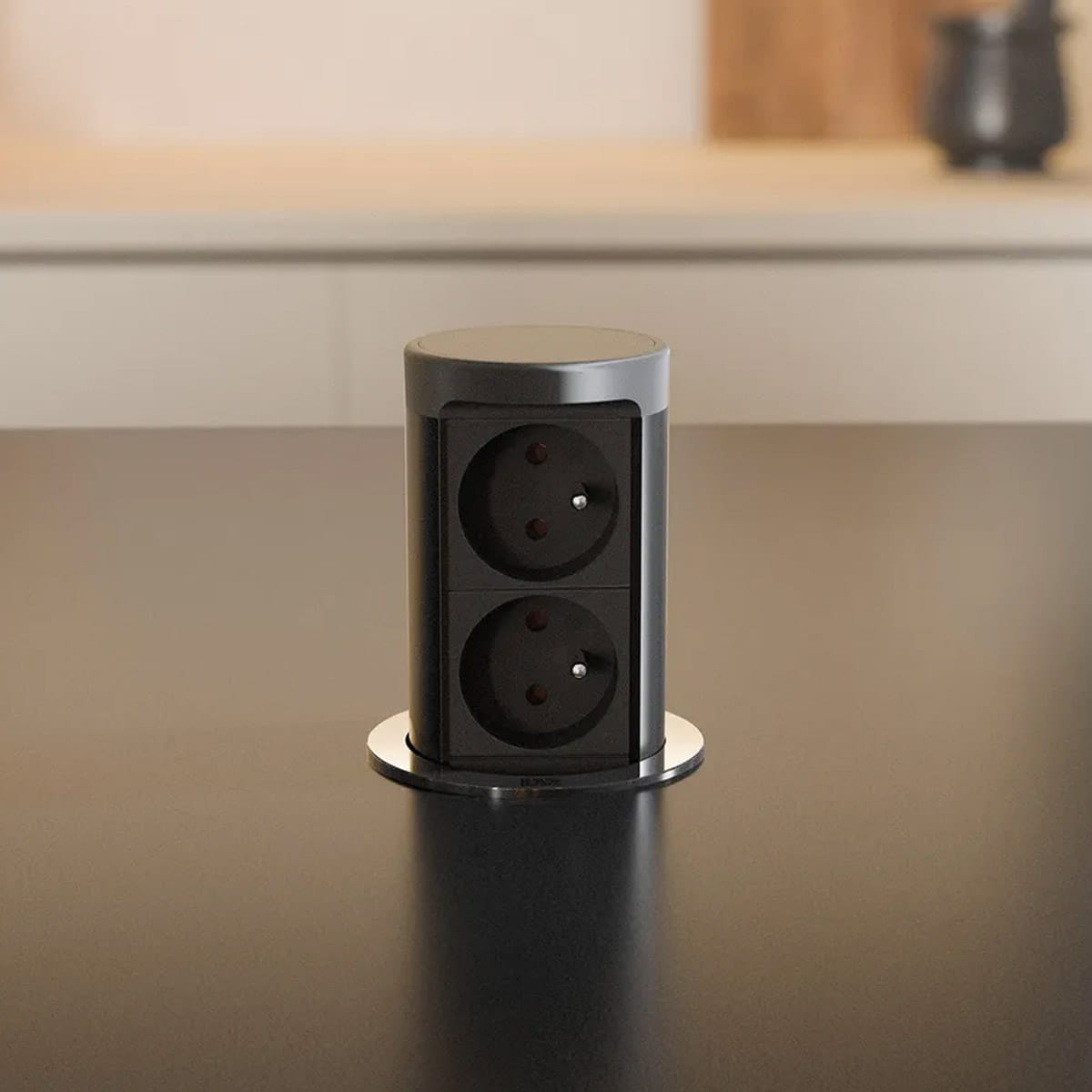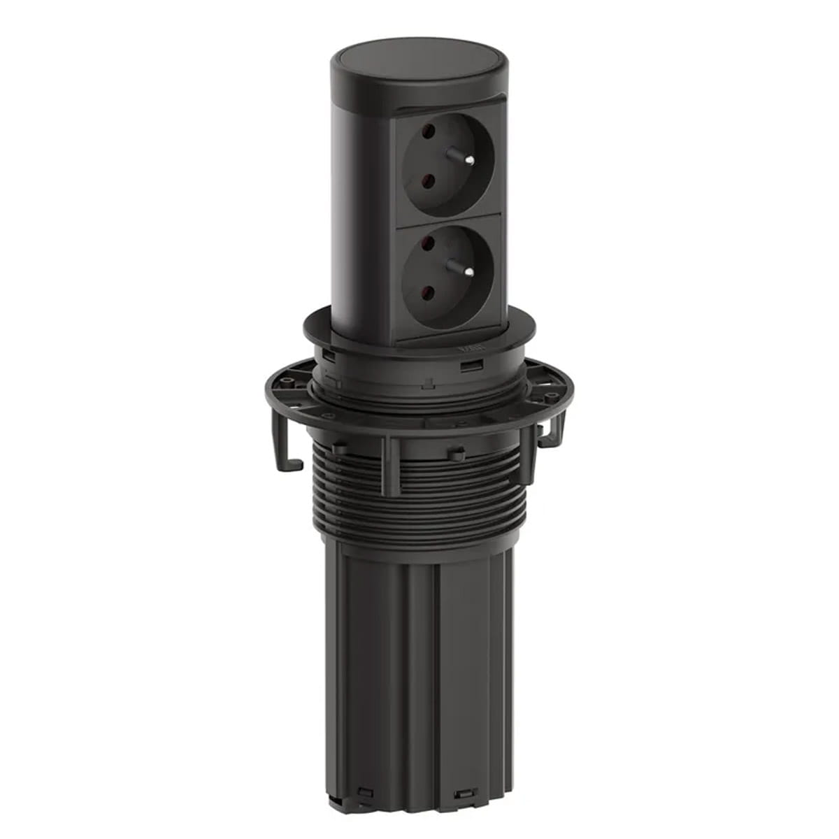 Bachmann ELEVATOR 2 wysuwane gniazdo w eleganckiej, matowej czerni. Model Bachmann ELEVATOR 2 to nowoczesne rozwiązanie, które łączy klasyczne zasilanie w stylowej, czarnej obudowie o matowym wykończeniu. Wystarczy lekkie naciśnięcie, aby mechanizm cichego otwierania wysunął moduł z blatu; po użyciu równie płynnie chowa się z powrotem.