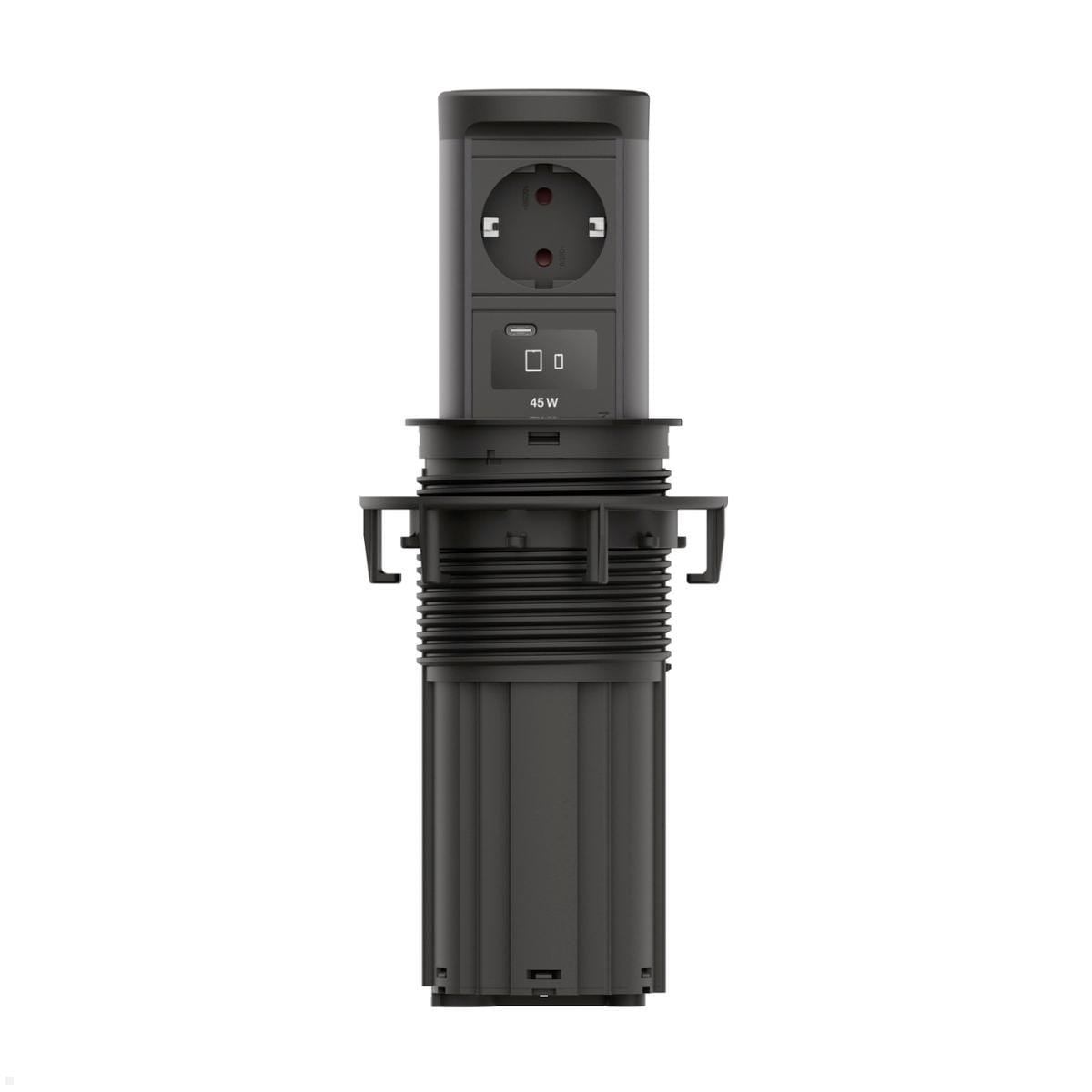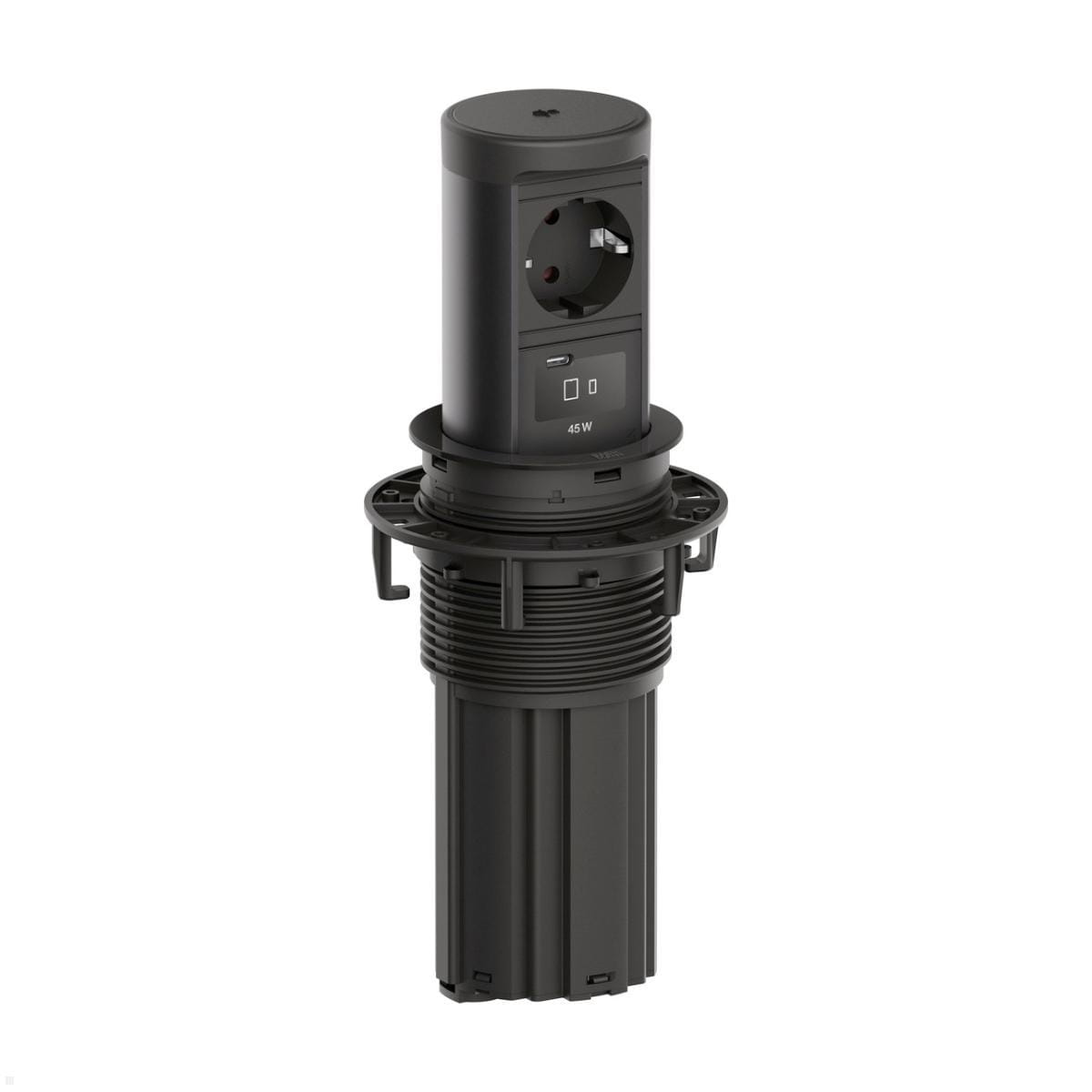 BACHMANN ELEVATOR 2 gniazdo zasilające 1x230V Schuko + USB C 45W +QI2 CZARNY