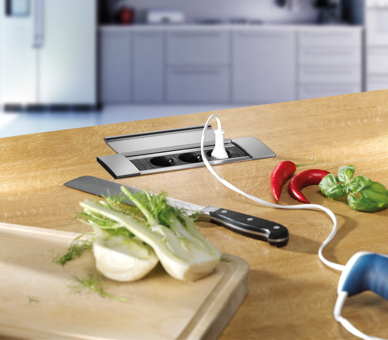 BACHMANN kompaktowy POWER FRAME ewoluował w POWER FRAME COVER. Stylowa i elegancka aluminiowa pokrywa została stworzona z myślą o salach konferencyjnych i biurach. To nie tylko estetyczny element wystroju, ale także praktyczna listwa blatowa, która chroni gniazda zasilające oraz moduły do przesyłu danych przed kurzem i zabrudzeniami. POWER FRAME COVER to idealne rozwiązanie dla każdego, kto ceni funkcjonalność i elegancję w przedłużaczach biurkowych.