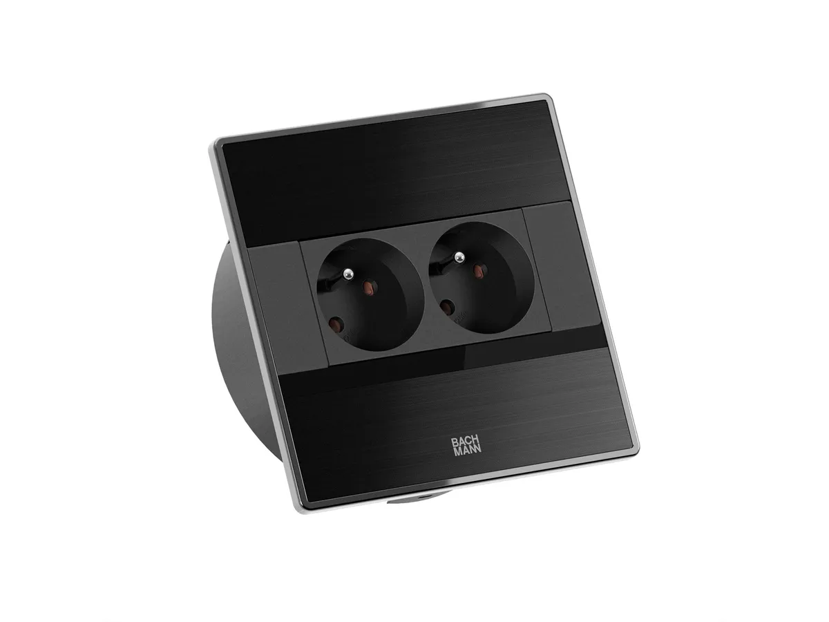 Model Bachmann SENSE to kompaktowe gniazdo do zabudowy w blacie, przeznaczone głównie do biur, stołów konferencyjnych lub kuchni. Należy do serii SENSE, czyli rozwiązań z płaską, uchylną pokrywą, która po zamknięciu licuje się z powierzchnią blatu i zapewnia estetyczny wygląd.