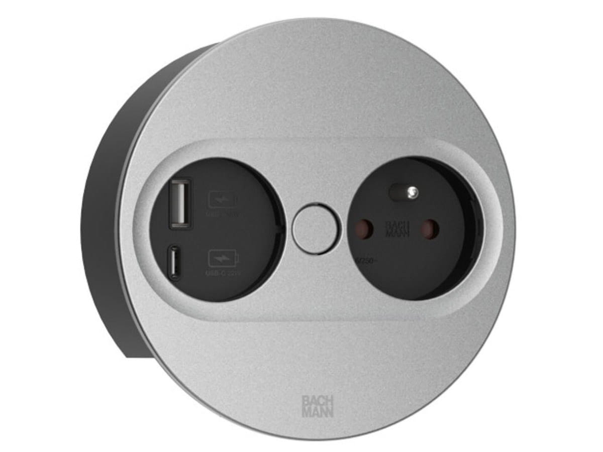BACHMANN TWIST 2 ROUND PUSH gniazdo zasilające 1x230V + 1xUSB(A+C) SREBRNY