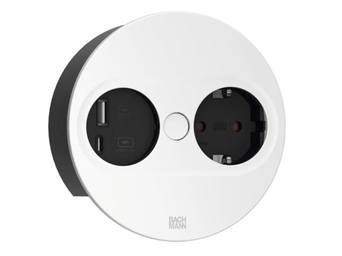 BACHMANN TWIST 2 ROUND PUSH gniazdo zasilające 1x230V Schuko + 1xUSB(A+C) BIAŁY