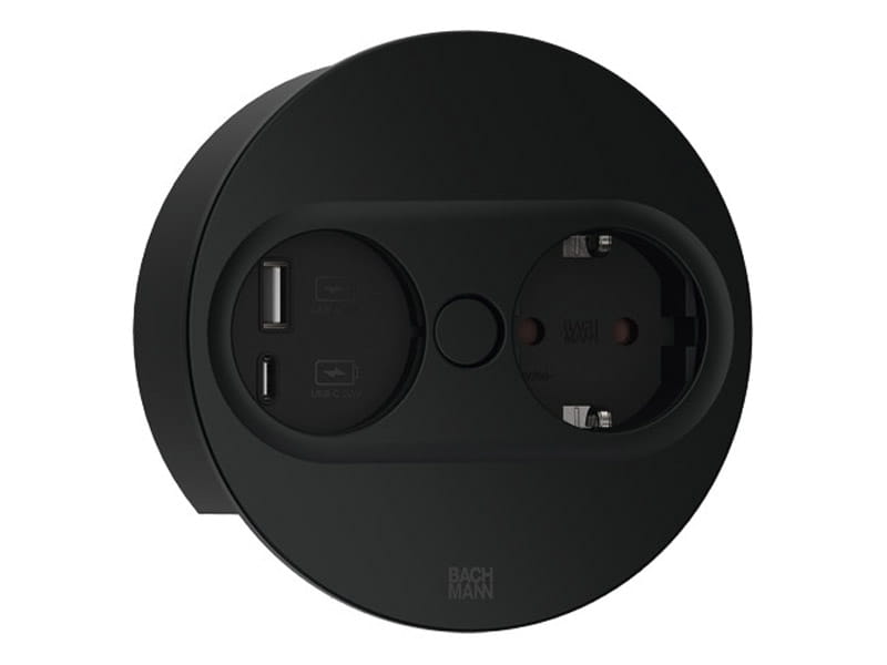 BACHMANN TWIST 2 ROUND PUSH gniazdo zasilające 1x230V Schuko + 1xUSB(A+C) CZARNY