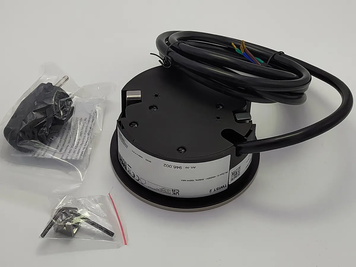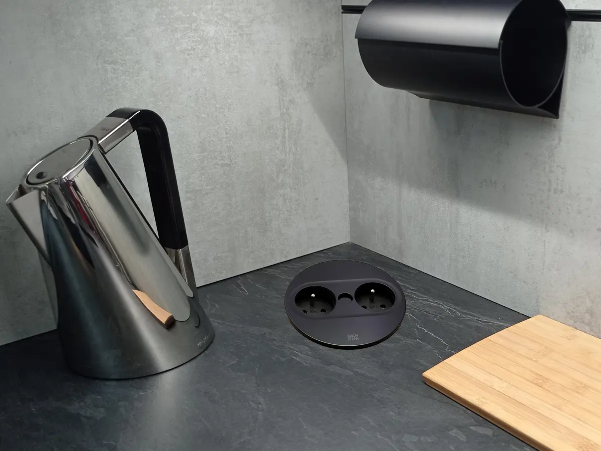 Kompaktowa budowa i niewielka głębokość montażu sprawiają, że TWIST 2 można bez problemu zintegrować z blatem kuchennym lub biurkiem, oszczędzając cenną przestrzeń. Dzięki przewodowi zasilającemu poprowadzonemu blisko obudowy oraz głębokości instalacji wynoszącej jedynie 40 mm, urządzenie nadaje się do montażu nawet nad szufladami.