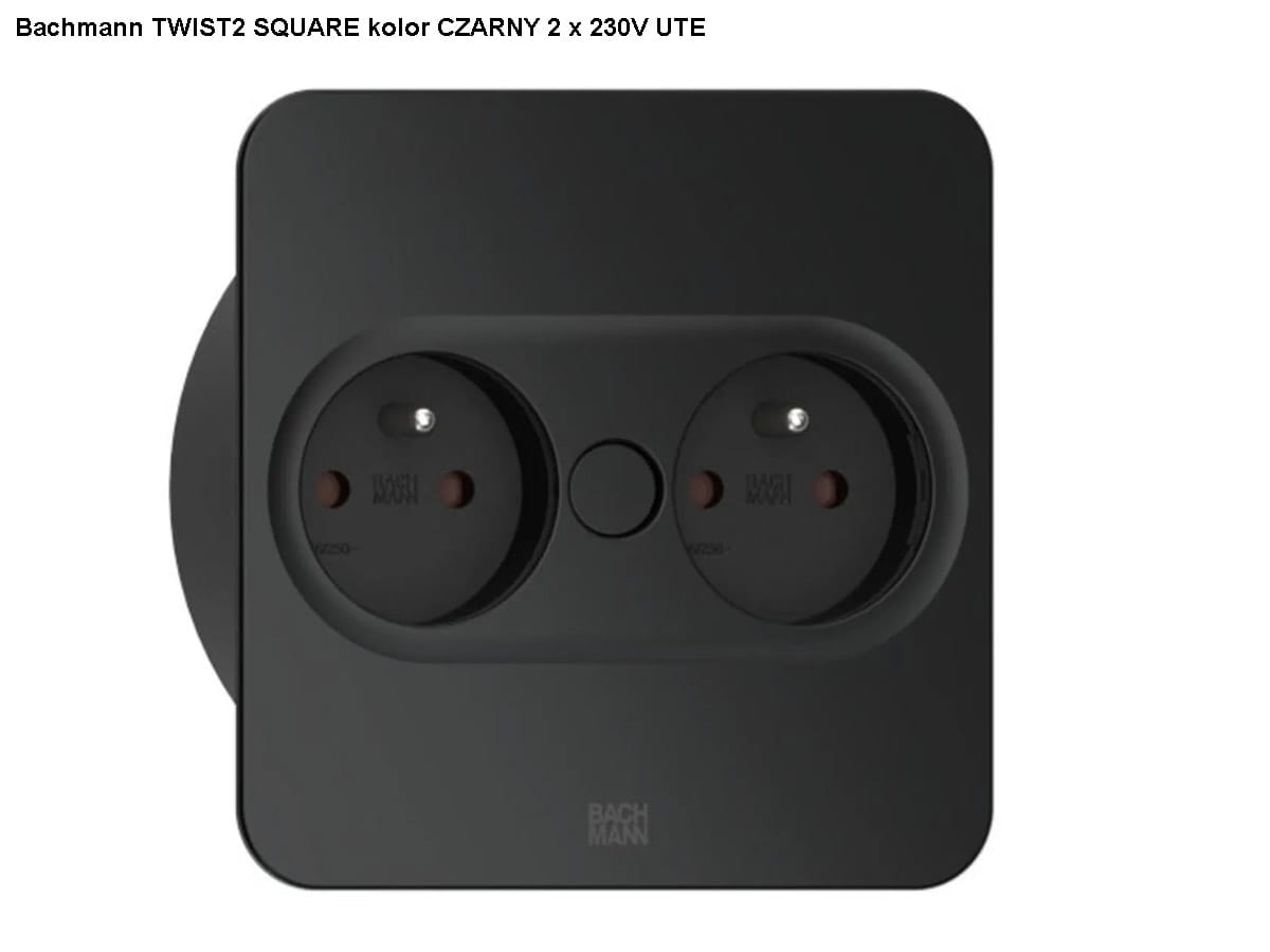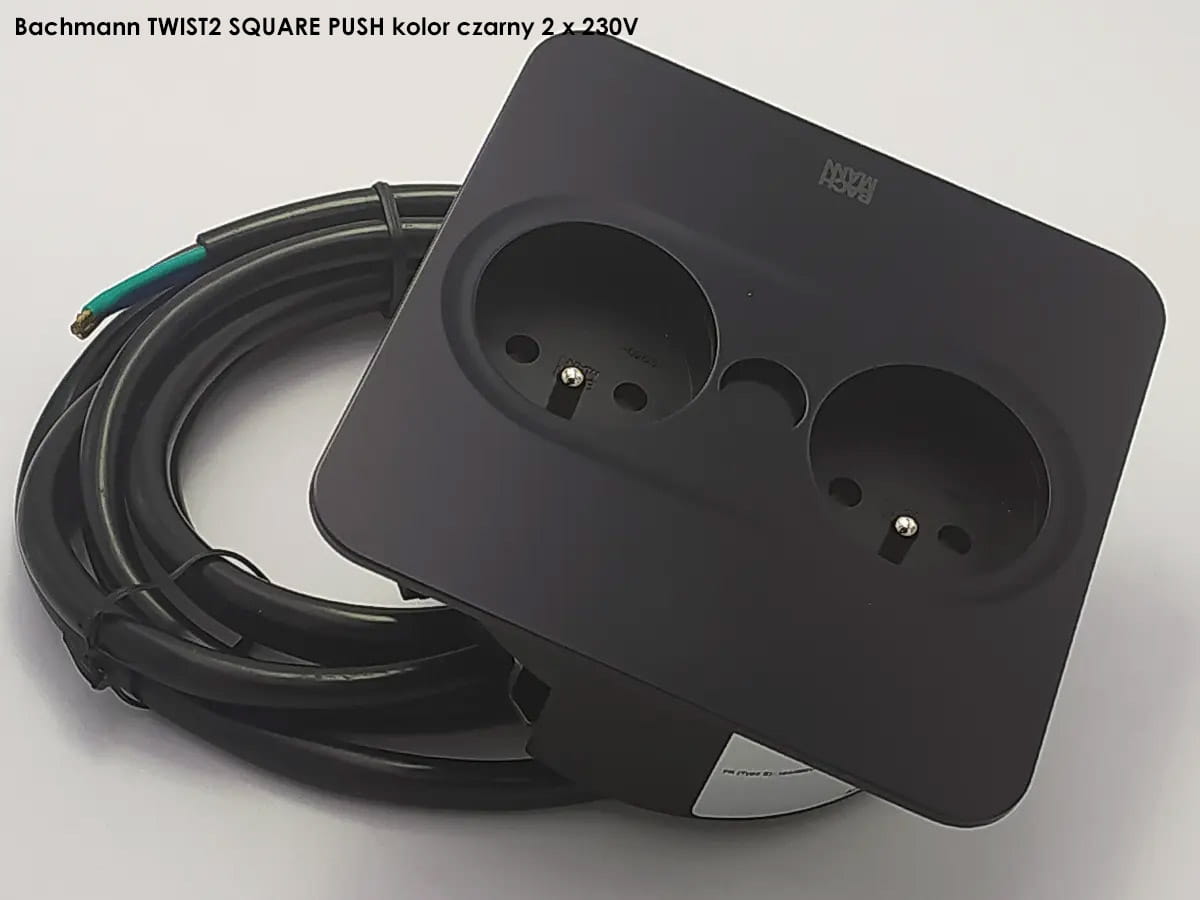 BACHMANN TWIST 2 SQUARE PUSH gniazdo zasilające 2x230V CZARNY