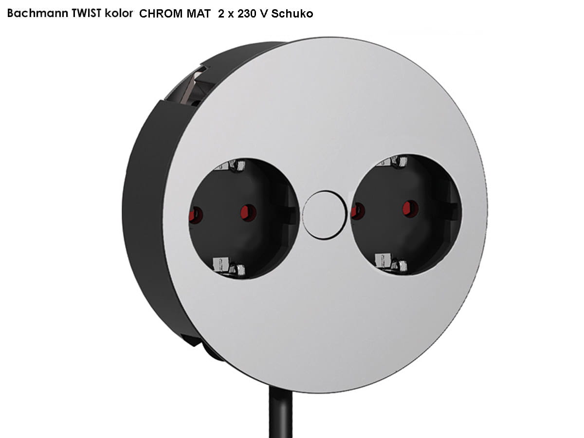 BACHMANN TWIST gniazdo zasilające 2x230V Schuko kolor CHROM MAT