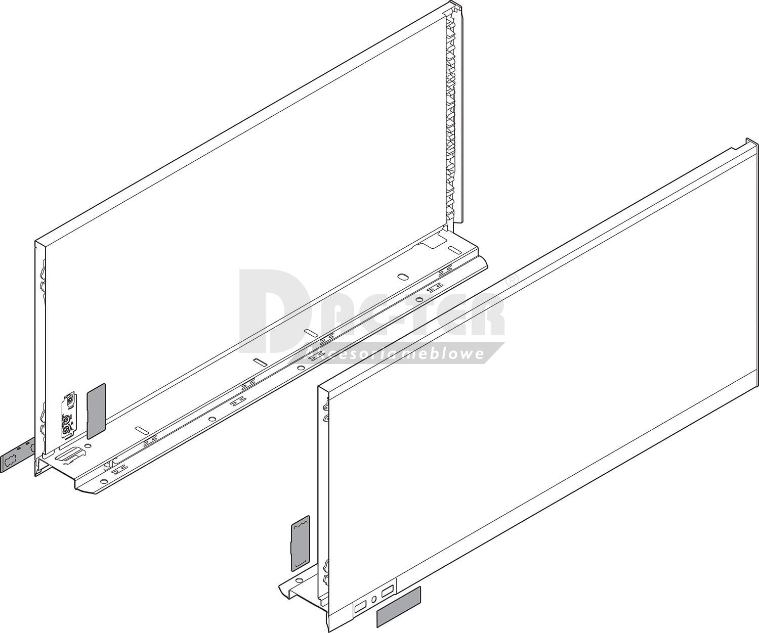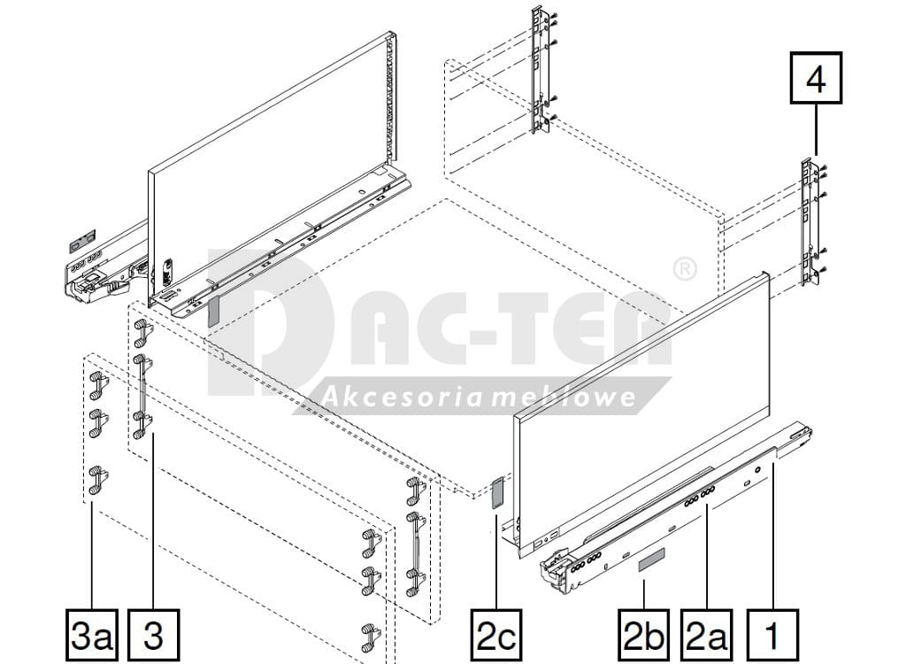 - Montaż boków szuflady ze ścianką tylną: na zatrzask clip (stalowa ścianka tylna lub uchwyt do drewnianej ścianki tylnej)
