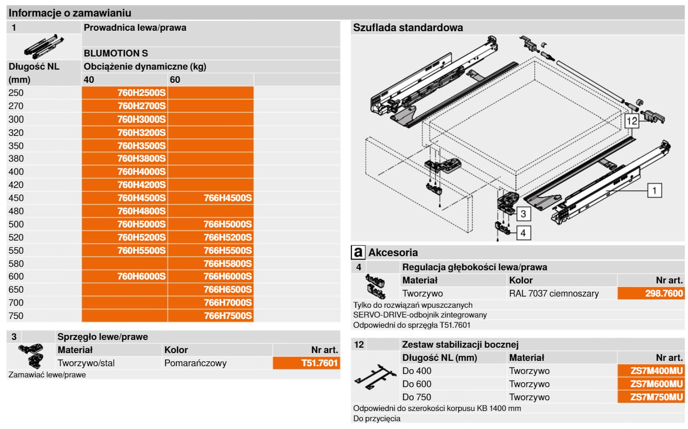 BLUM-prowadnica UNI MOVENTO (TOB) 760H3500S 40kg