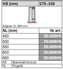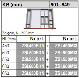 - Wkład na sztućce ZSI.550BI1N przeznaczony do TANDEMBOX długość: 550mm / szerokość korpusu: 279-349mm