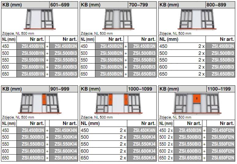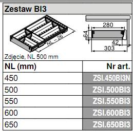 - Wkład na sztućce ZSI.550BI3 przeznaczony do TANDEMBOX długość: 550mm / szerokość korpusu: 400-1200mm