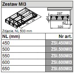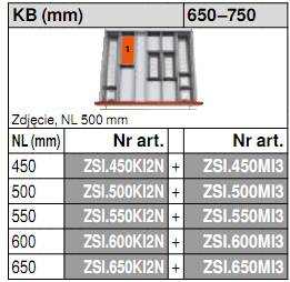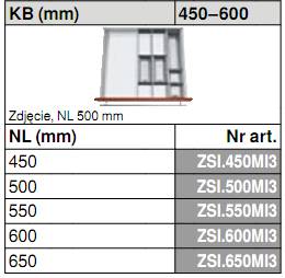 - Wkład na sztućce ZSI.500MI3 przeznaczony do TANDEMBOX długość: 500mm / szerokość korpusu: 450-750mm