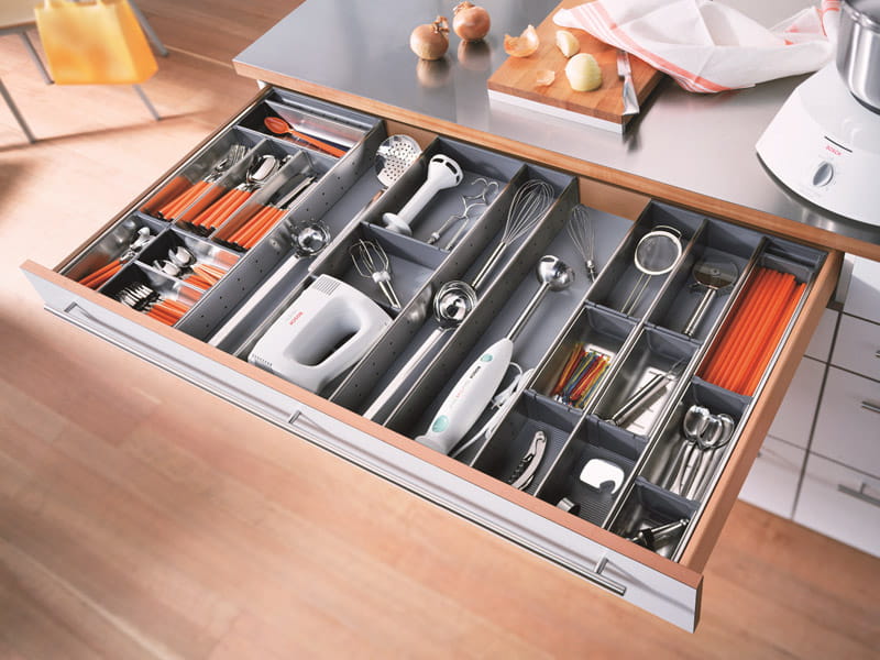 ORGA-LINE to elastyczny system podziału wewnętrznego szuflad. Pozwala optymalnie wykorzystać przestrzeń i zachować porządek. Składa się z wyjmowanych pojemników i przegródek ze stali nierdzewnej (INOX) łączonej z tworzywem sztucznym odpornym na zarysowania. Pojemniki można myć w zmywarce.