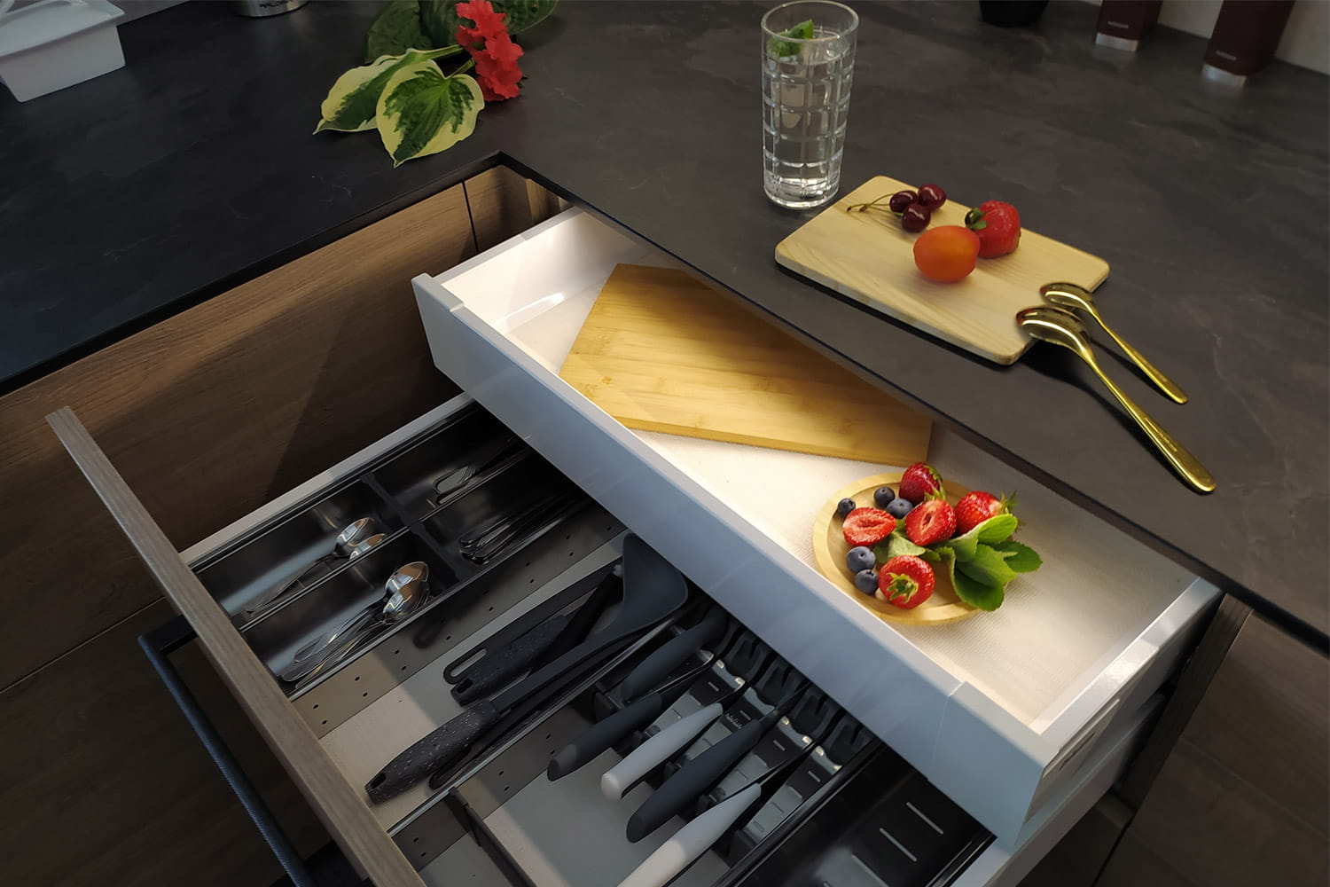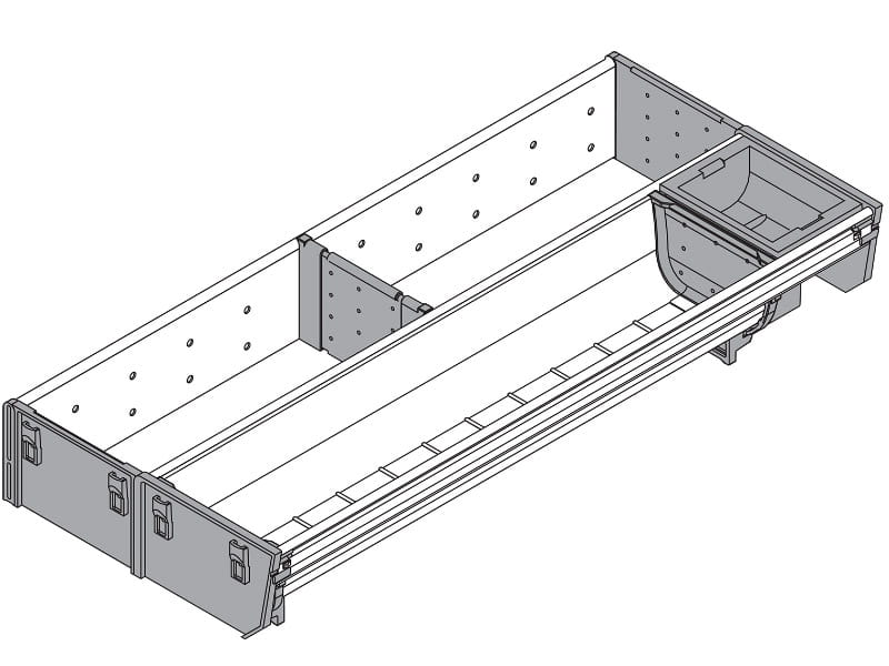 ORGA-LINE to elastyczny system podziału wewnętrznego szuflad. Pozwala optymalnie wykorzystać przestrzeń i zachować porządek. Składa się z wyjmowanych pojemników i przegródek ze stali nierdzewnej (INOX) łączonej z tworzywem sztucznym odpornym na zarysowania. Pojemniki można myć w zmywarce.