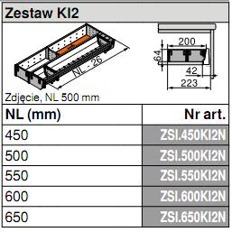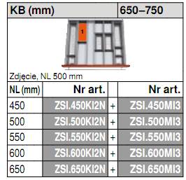 - Wkład na sztućce ZSI.450KI2N przeznaczony do TANDEMBOX długość: 450mm / szerokość korpusu: 650-750mm