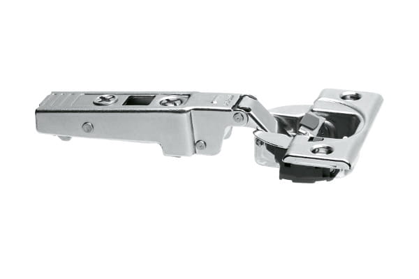 Zawias CLIP top 71B9550 Z HAMULCEM. Kąt otwarcia 95° do drzwi nakładanych, grubych i profilowanych Zawias posiada zintegrowany hamulec BLUMOTION zapewniający delikatne i ciche zamykanie niezależnie od wagi frontu i prędkości zamykania. Dostosowanie siły Blumotion do wagi frontu jest niezwykle proste. Wystarczy przesunąć wyłącznik na puszce i zamknąć drzwi. Podczas kolejnego zamykania efekt BLUMOTION będzie już dopasowany. Blumotion można deaktywować. Zastosowana technika CLIP top gwarantuje prosty montaż bez użycia narzędzi. Zawias posiada regulację w 3 płaszczyznach w tym bezstopniową regulację głębokości przez gwint ślimakowy oraz mimośrodową regulację głębokości. Układ wiercenia pod puszkę jest taki sam jak w zawiasach Clip Top.