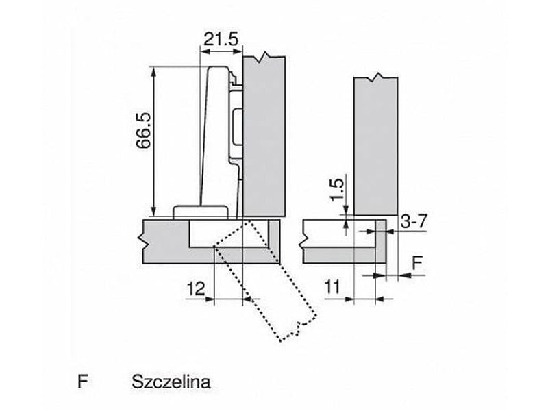 - kąt otwarcia: 110°