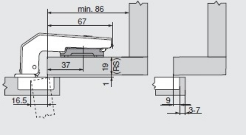 UWAGA: Aby zamontować zawias należy dokupić prowadnik np. 173L6100