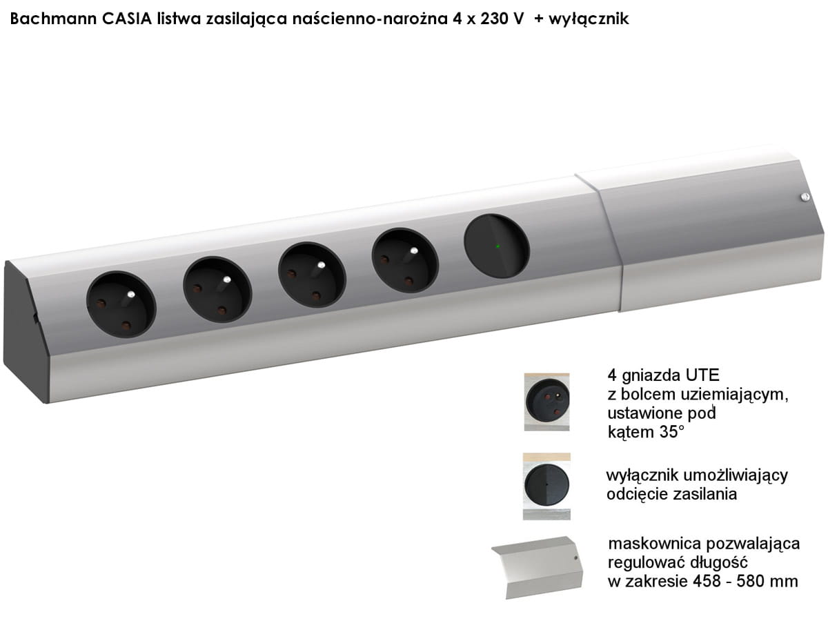 Bachmann CASIA listwa zasilająca naścienno-narożna 4x230V + włącznik