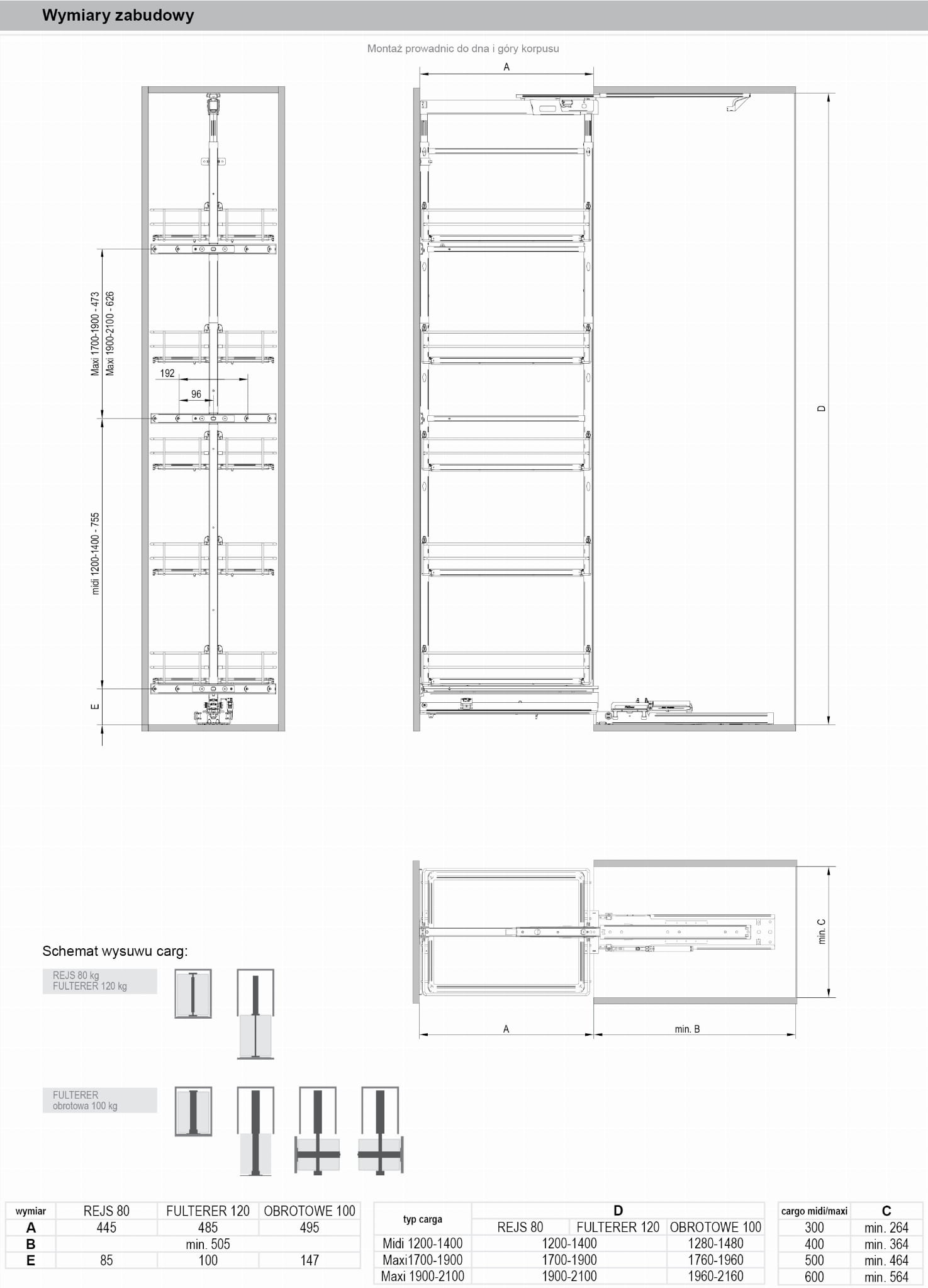 - Dopuszczalne obciążenie całego systemu zależne od rodzaju zastosowanych prowadnic