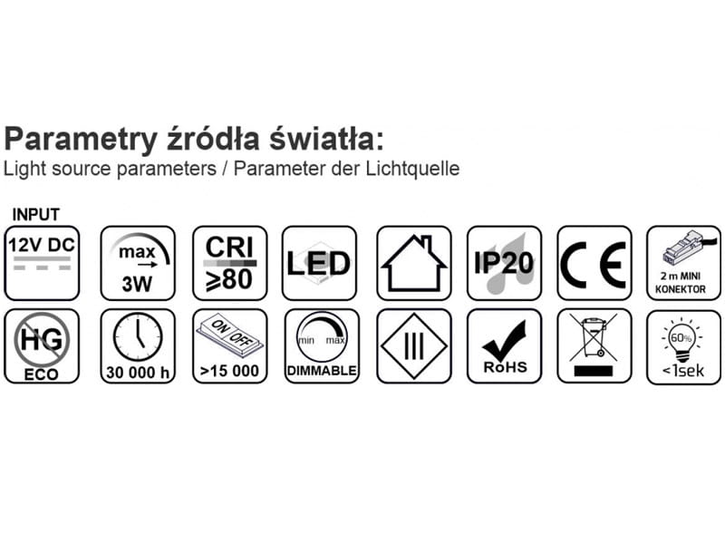 - Czas rozświetlania do 60% pełnego strumienia świetlnego: ≤1s