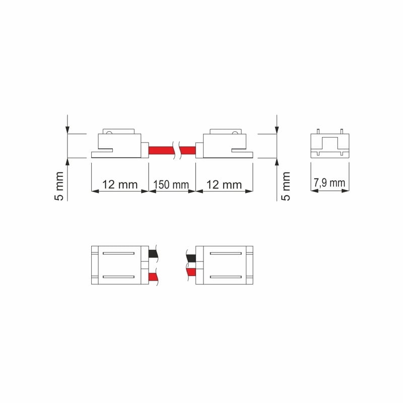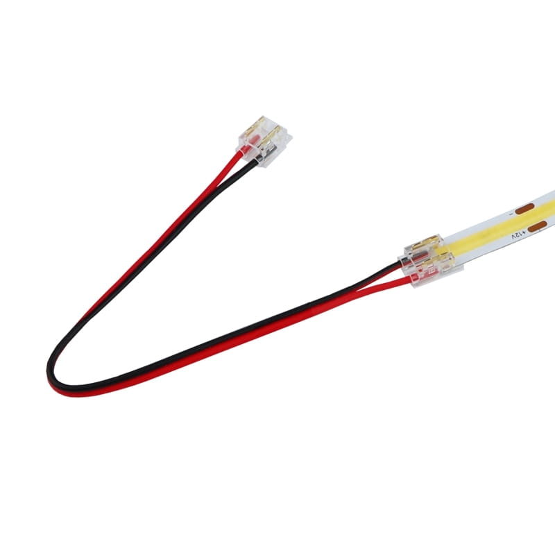 Przewód montażowy 15 cm do dwóch taśm LED SMD i COB 8/10 mm. Przewód umożliwia szybkie i wygodne połączenie dwóch taśm LED o szerokości 8 mm i 10 mm, eliminując konieczność lutowania, które często bywa problematyczne. Wystarczy umieścić jedną taśmę w złączce, a drugą po przeciwnej stronie, a następnie zacisnąć – montaż jest intuicyjny i zapewnia solidne połączenie. Dzięki swojej wszechstronności przewód sprawdzi się w różnego rodzaju instalacjach oświetleniowych, zapewniając prosty i szybki montaż.