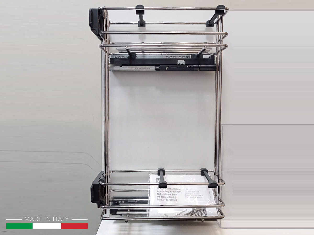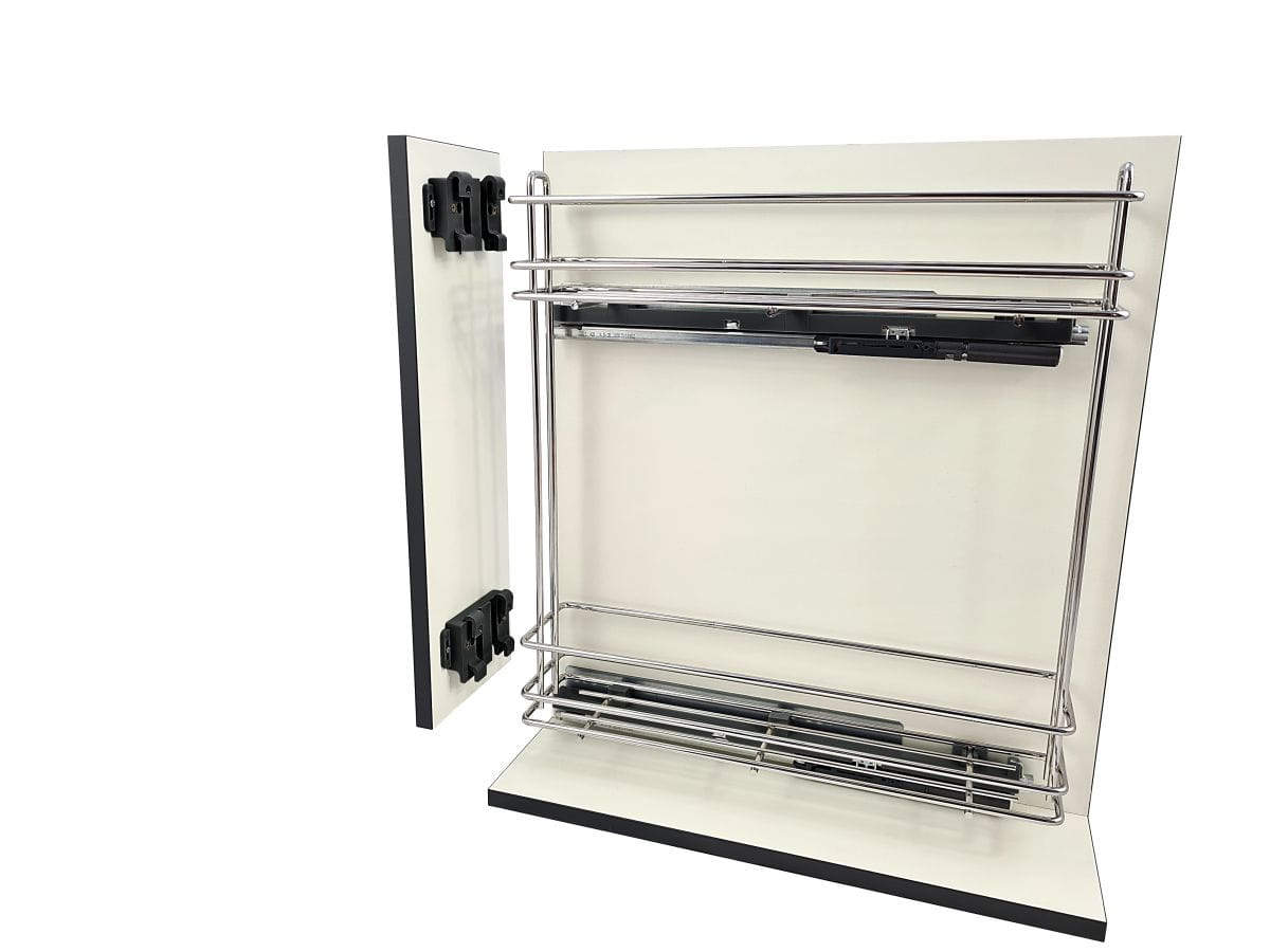 Kosze CARGO mini to wygodna użytkowa przestrzeń do przechowywania butelek, kubków, środków czyszczących, ręczników, narzędzi czy artykułów spożywczych itp. Solidne prowadnice Hettich pozwalają na ciche, delikatne domknięcie a pełen wysuw carga zapewni szybki i łatwy dostęp do przechowywanych produktów.