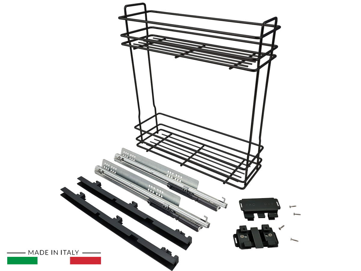 Kosze CARGO mini to wygodna użytkowa przestrzeń do przechowywania butelek, kubków, środków czyszczących, ręczników, narzędzi czy artykułów spożywczych itp. Solidne prowadnice Hettich pozwalają na ciche, delikatne domknięcie a pełen wysuw carga zapewni szybki i łatwy dostęp do przechowywanych produktów.