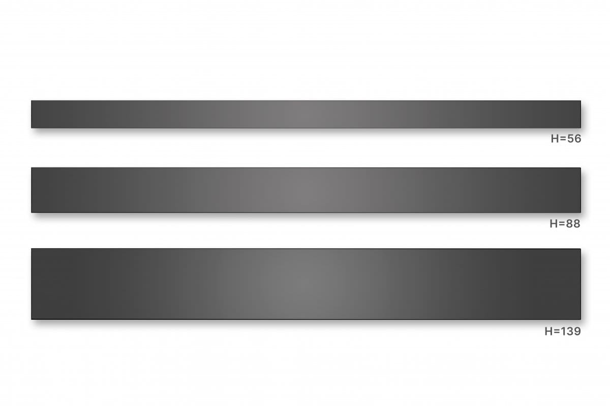 Szklane fronty do systemów AXIS PRO GLASS – elegancja w nowoczesnym wydaniu. Szklane fronty zostały stworzone jako dopełnienie systemów szuflad z przeszklonymi bokami AXIS PRO GLASS. Wykonane z niehartowanego szkła panele o długości 1100 mm można z łatwością dociąć do odpowiedniego rozmiaru, co pozwala na ich pełne dopasowanie do indywidualnych projektów. Dostępne w trzech praktycznych wysokościach – 56 mm, 88 mm i 139 mm – sprawdzą się w wielu zastosowaniach.