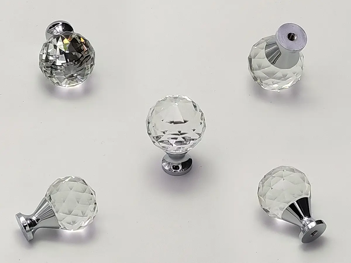 Kryształowa gałka to elegancki akcent, który doskonale uzupełni wnętrza z wykorzystaniem szlachetnych materiałów, takich jak atłas czy czarna skóra. Świetnie wpisuje się zarówno w aranżacje glamour, jak i nowoczesne, wnosząc subtelny blask i wyrafinowany charakter. Pasuje zarówno do mebli drewnianych, jak i tych o współczesnym designie, nadając im stylowego wyrazu. Gałka została starannie wykonana ze szkła wysokiej jakości, a jej znalowa podstawa zapewnia intensywny połysk i trwałość, co czyni ją produktem klasy premium. Dostępna jest w czterech rozmiarach oraz kilku wersjach kolorystycznych, dając szerokie możliwości aranżacyjne.