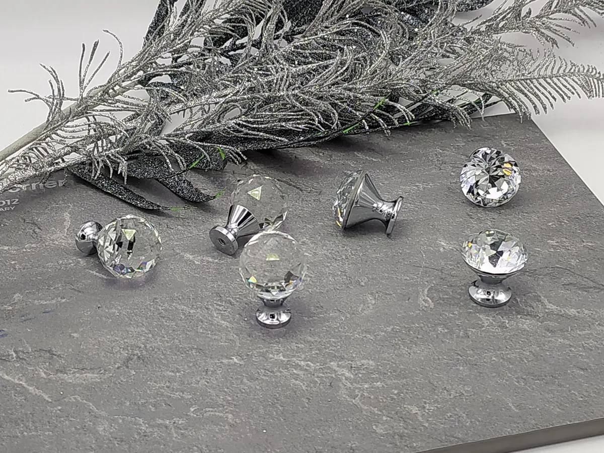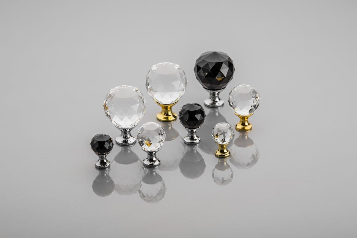 Kryształowa gałka to elegancki akcent, który doskonale uzupełni wnętrza z wykorzystaniem szlachetnych materiałów, takich jak atłas czy czarna skóra. Świetnie wpisuje się zarówno w aranżacje glamour, jak i nowoczesne, wnosząc subtelny blask i wyrafinowany charakter. Pasuje zarówno do mebli drewnianych, jak i tych o współczesnym designie, nadając im stylowego wyrazu. Gałka została starannie wykonana ze szkła wysokiej jakości, a jej znalowa podstawa zapewnia intensywny połysk i trwałość, co czyni ją produktem klasy premium. Dostępna jest w czterech rozmiarach oraz kilku wersjach kolorystycznych, dając szerokie możliwości aranżacyjne.