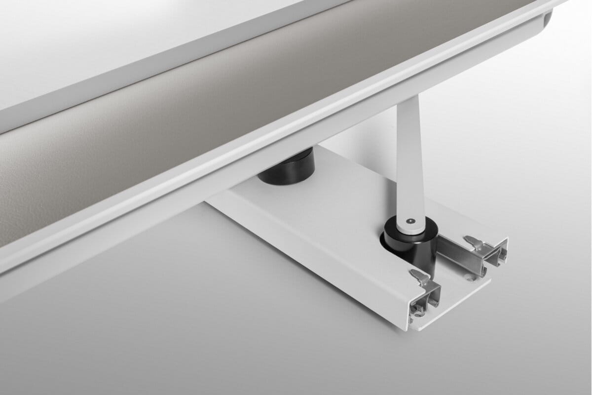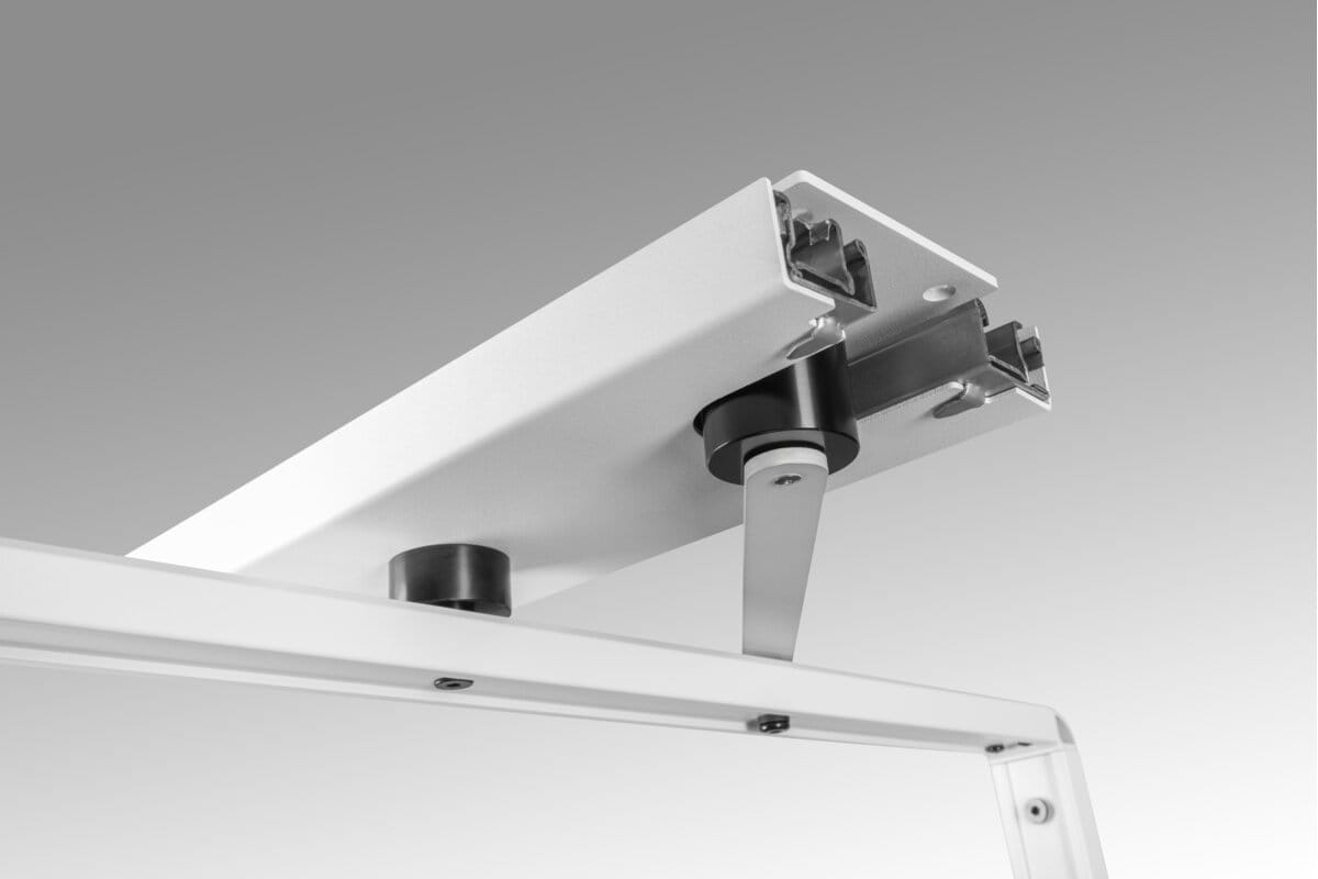 Solidna konstrukcja opiera się na prowadnicy montowanej w dolnej części, co gwarantuje płynne oraz ciche działanie systemu. Górna półka posiada regulację wysokości, dzięki czemu można dopasować przestrzeń do różnych typów obuwia. Całość wykończono elegancką powierzchnią z eko-skóry, która nie tylko estetycznie się prezentuje, ale także ułatwia utrzymanie półki w czystości.