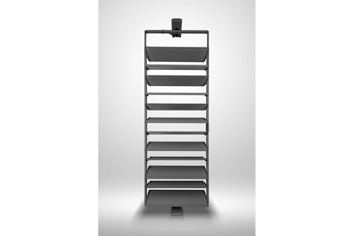 System obrotowych półek na buty GTV Elite przeznaczony jest do montażu wewnątrz szaf oraz garderób. Wyposażono go w wygodną, ergonomiczną rączkę, która ułatwia chwytanie i wysuwanie półki. Mechanizm obrotu o 180° zapewnia swobodny i pełny dostęp do przechowywanego obuwia.