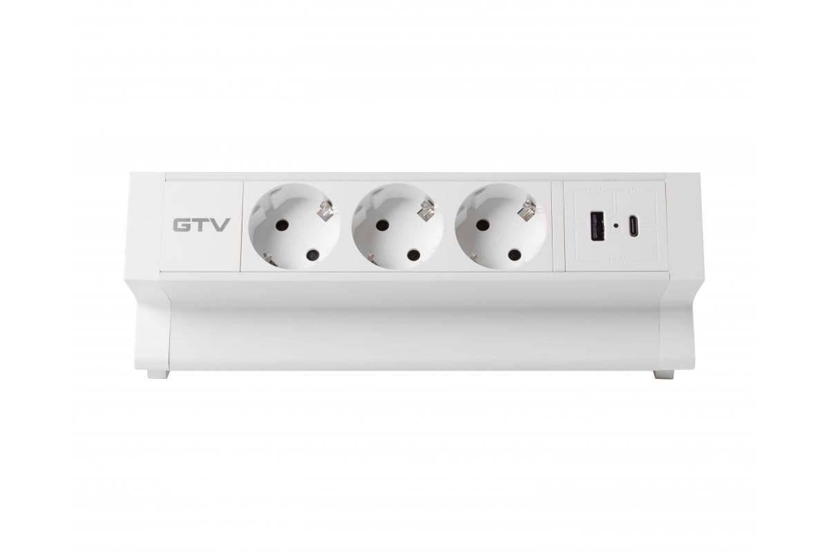 GTV-Gniazdo BASCO białe 3x230V schuko + USB A+C