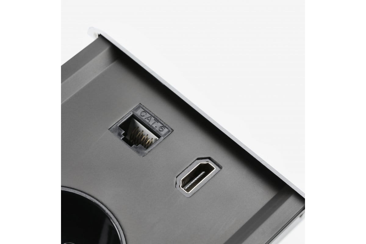 - Gniazda: 2x230 UTE, RJ45, USB A+C, HDMI