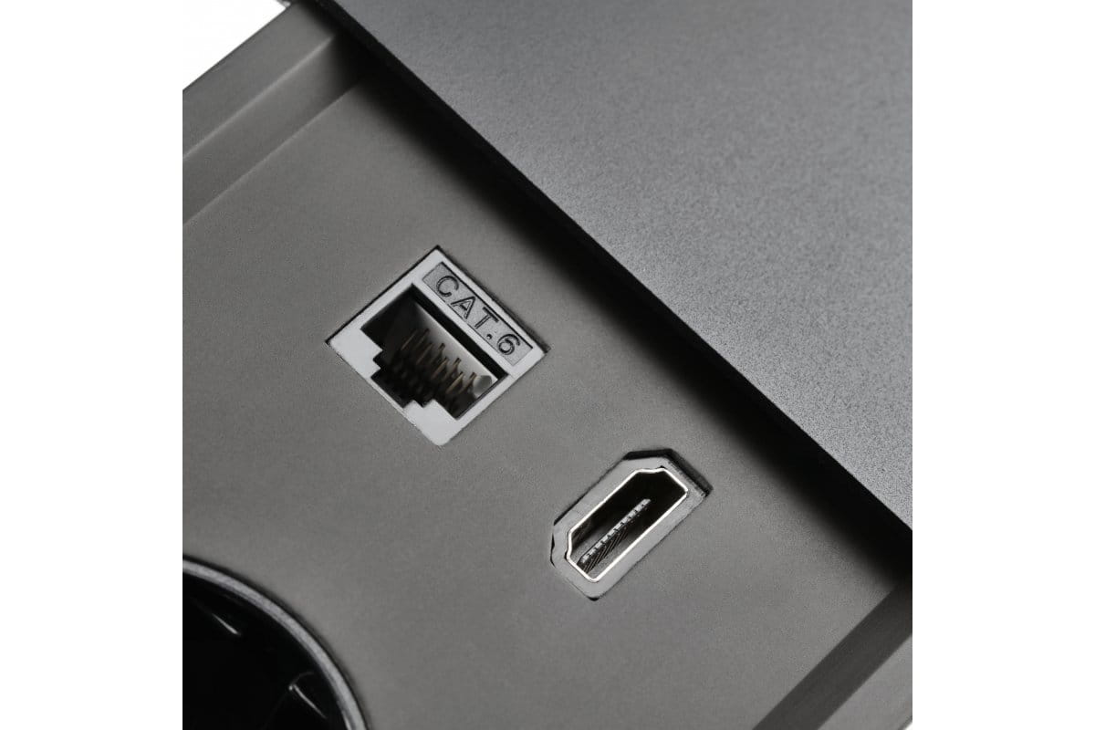 - Gniazda: 2x230 UTE, RJ45, USB A+C, HDMI