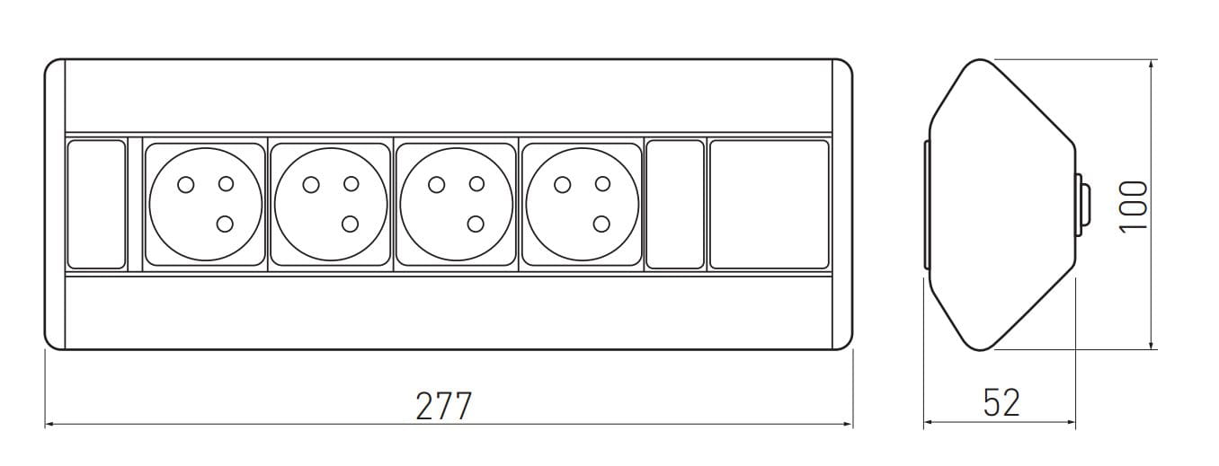 Przedłużacz można zamontować standardowo do blatu, ale dzięki dołączonym kołkom, z łatwością można go przenieść i zamontować w rogu ściany. Posiada 4 gniazda z uziemieniem, co zapewnia dodatkowe bezpieczeństwo.