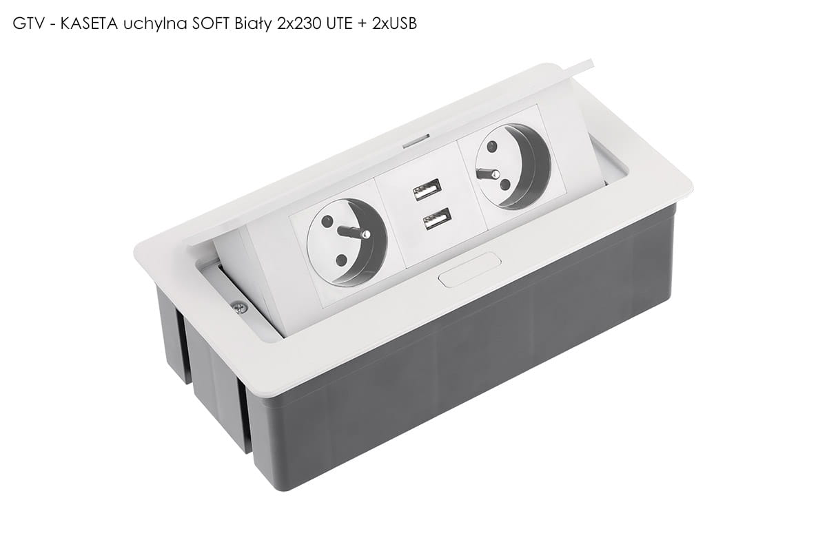 GTV - KASETA uchylna SOFT Biały 2x230V + USB (A+A)